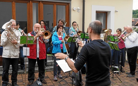 Anschließend an den Gottesdienst trat der gemeinsame Posaunenchor im „Gemeindehausbiergarten“ noch zu einem Standkonzert auf. Als Danke gab es einen kräftigen Applaus.