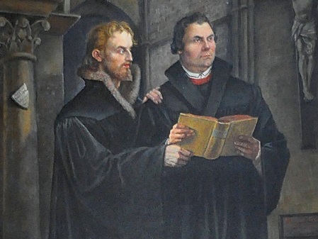 Das Gemälde zeigt die Reformatoren Martin Luther und Philipp Melanchthon.